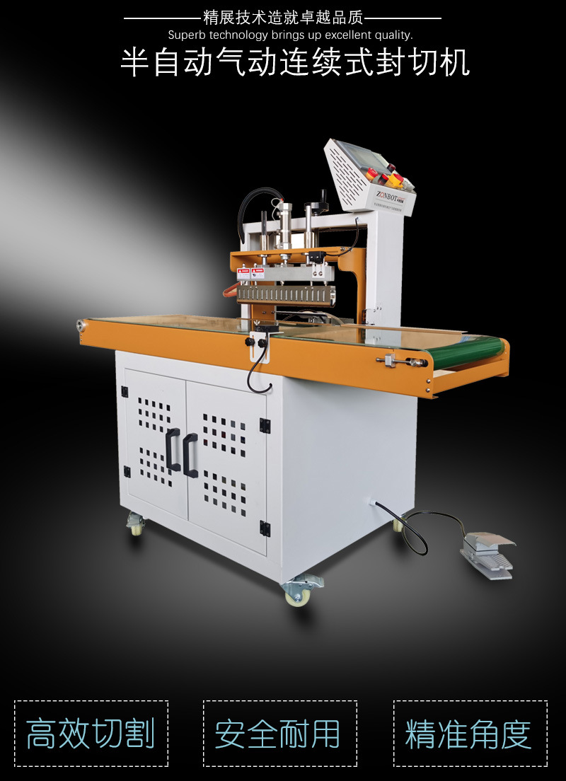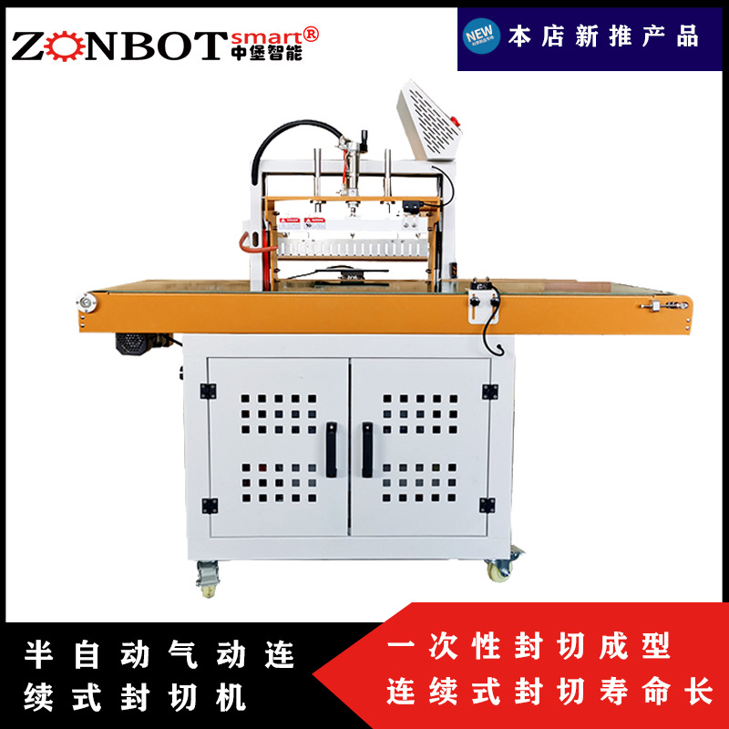 氣動連續式封切機能夠適應多種包裝薄膜材料,連續式封切效率高,降低人工成本