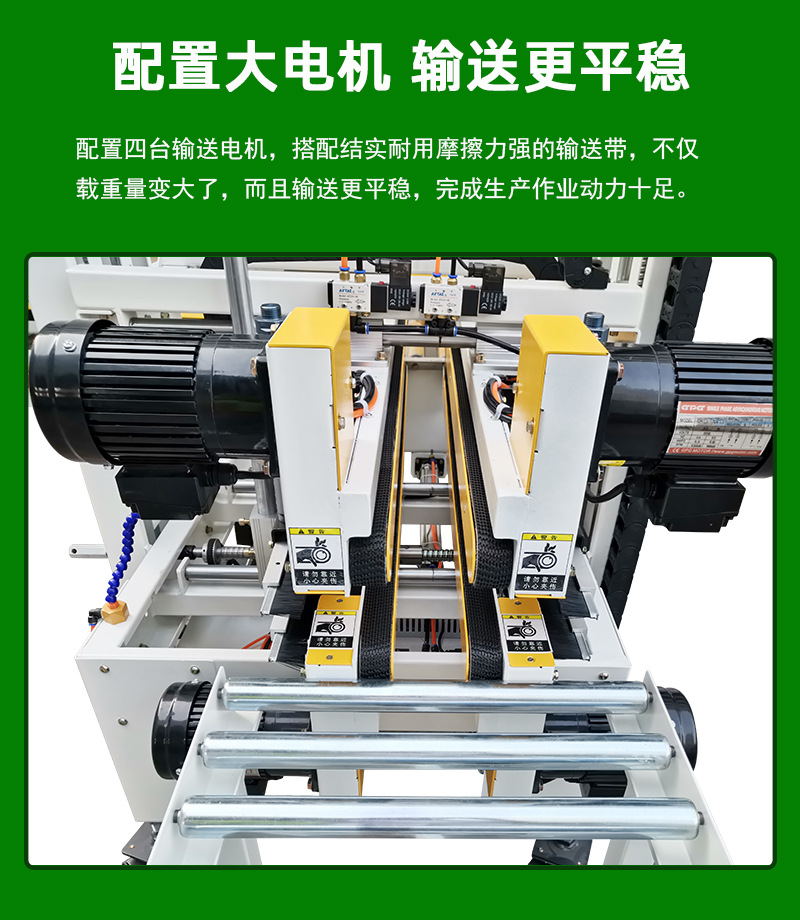 - 折蓋與定位:當(dāng)紙箱到達(dá)指定位置后,機(jī)器的相關(guān)機(jī)構(gòu)會自動將紙箱的蓋子按照預(yù)設(shè)的方式進(jìn)行折疊,使其準(zhǔn)備好接受封箱操作,確保箱蓋與箱體能夠準(zhǔn)確對齊13.