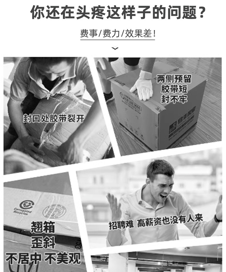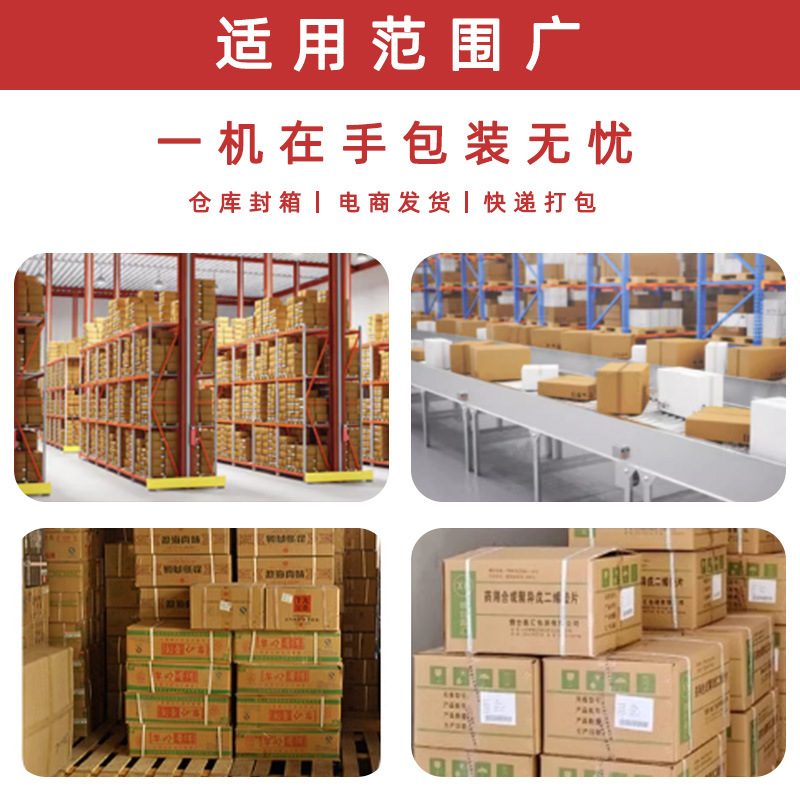 - 不同尺寸規格:可通過調節適應不同大小的箱子,無論是較小的快遞紙箱還是較大的工業包裝箱,都能進行有效的封箱和打包1.
