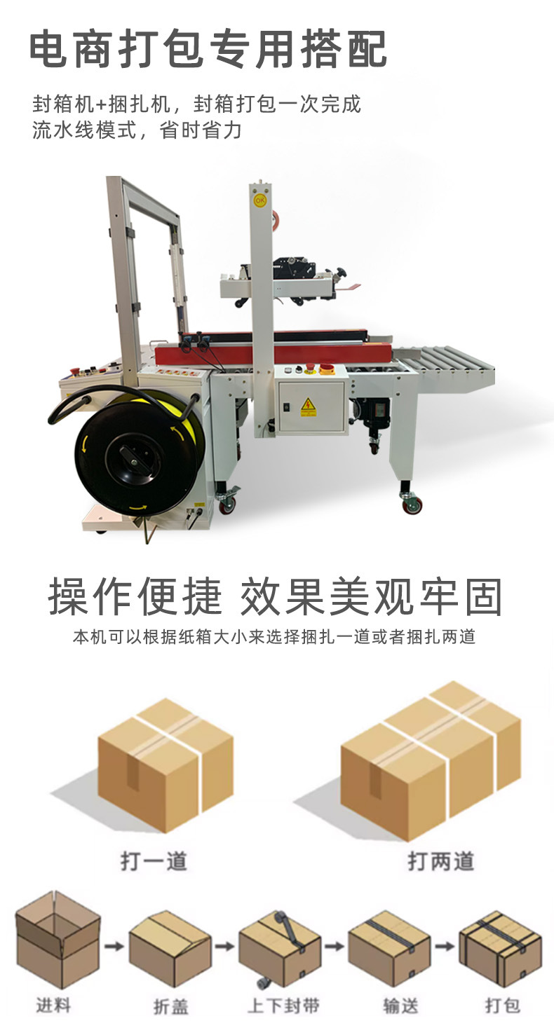 封箱打包一體機是一種集多種包裝功能于一體的設備,具有高效、便捷的特點,適用于多種場景