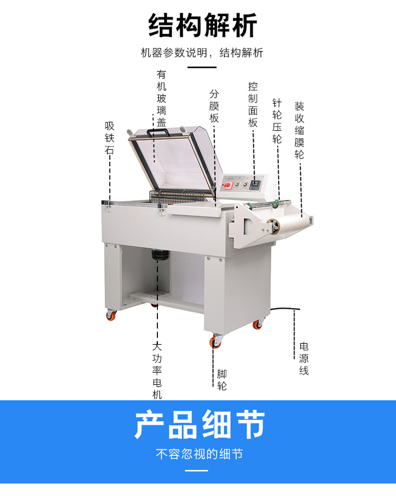 - 包裝質(zhì)量高:能夠確保熱收縮薄膜封口牢固、切割整齊,并且在熱收縮后薄膜緊密貼合產(chǎn)品,使包裝外觀整潔、美觀。良好的包裝質(zhì)量可以有效防止產(chǎn)品受到外界因素(如灰塵、水分、碰撞等)的影響,提高產(chǎn)品的防護(hù)性能。