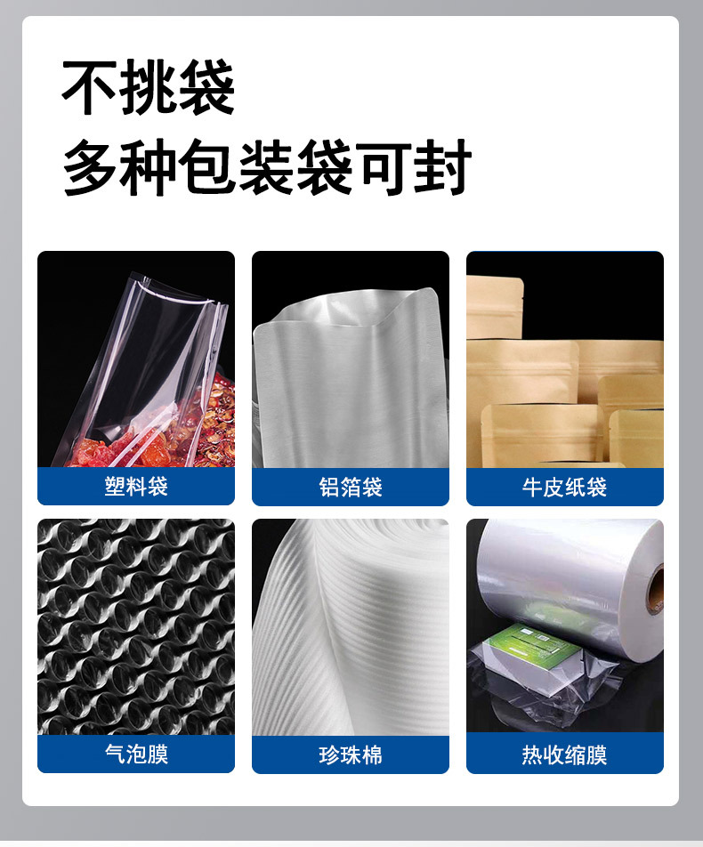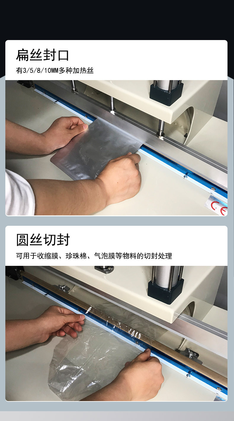 - 放置包裝袋:將需要封口的包裝袋開口對齊封口機的封口條,撫平袋口,避免出現褶皺,確保袋子放置平穩、封口位置精準。