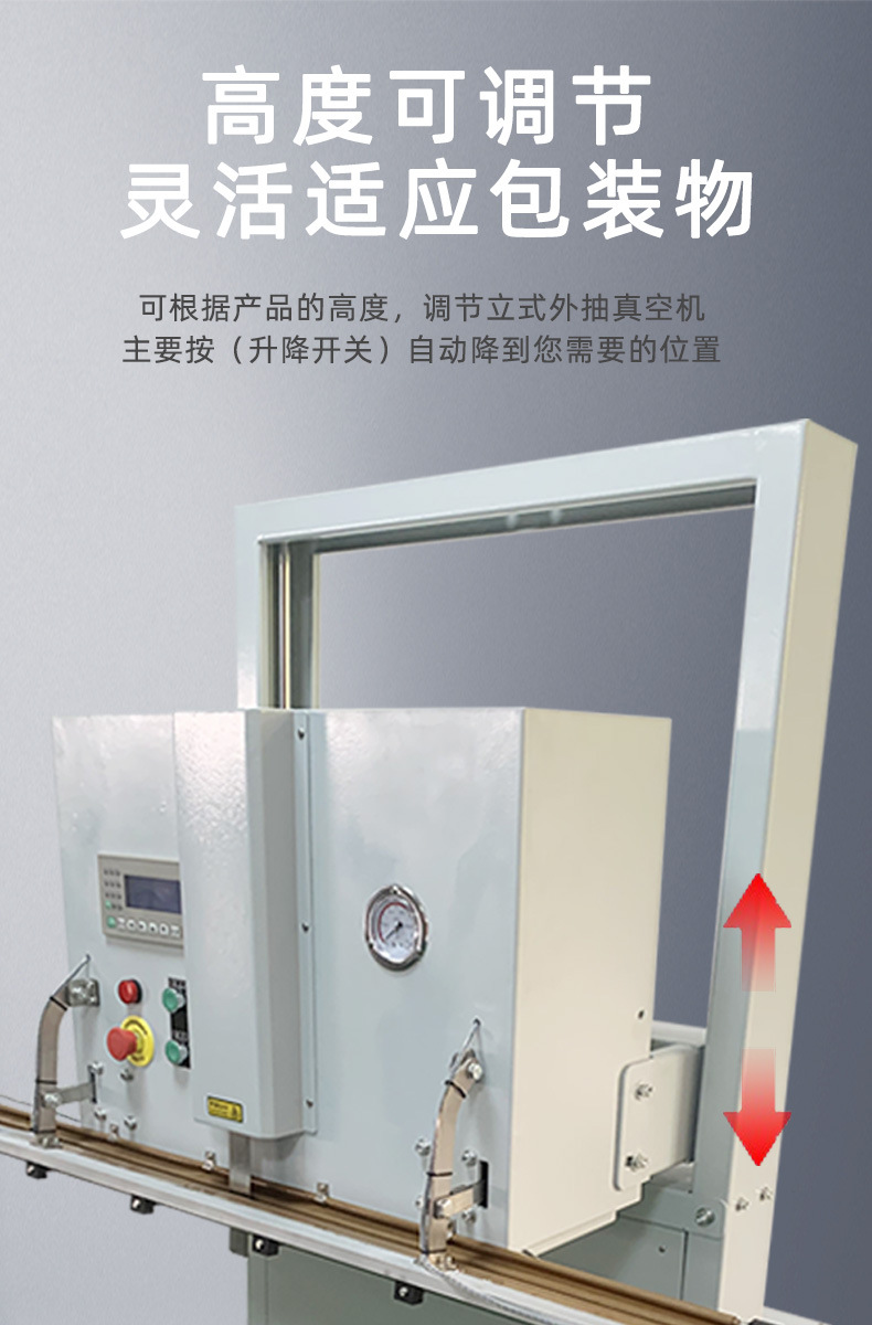 - 適應性強:得益于升降工作臺和立式結構,對包裝物品的形狀、尺寸、重量兼容性極高,解決了傳統(tǒng)固定高度真空包裝機的局限,不管是異形還是超大尺寸產(chǎn)品,都能應對自如。