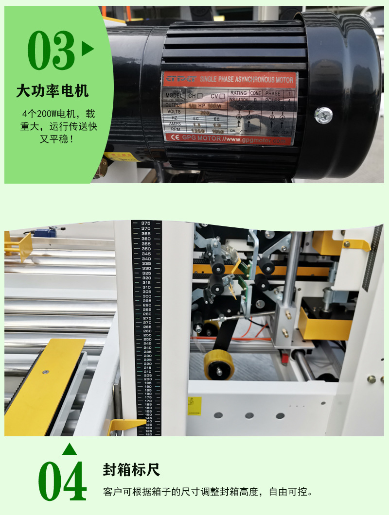 - 適應(yīng)性強(qiáng):得益于調(diào)節(jié)裝置,能夠輕松應(yīng)對不同大小、長寬高各異的紙箱,滿足多樣化的包裝需求,減少了因紙箱規(guī)格變化而頻繁更換設(shè)備的麻煩。