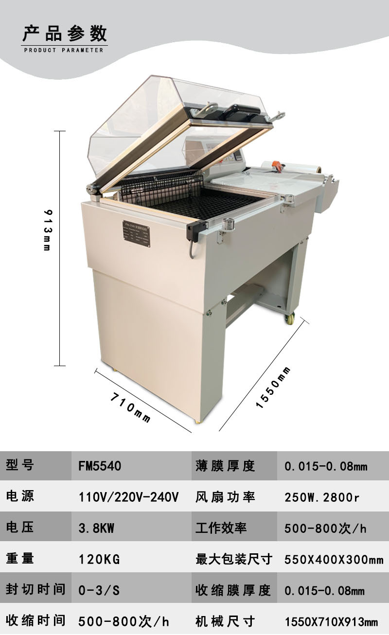 - 操作簡易便捷:配備智能化的操控系統,常見是 PLC 搭配觸摸屏,各項參數,諸如封切溫度、熱收縮溫度、輸送速度,均直觀呈現于屏幕上。操作人員僅需簡單培訓,就能依據產品特性與包裝需求,輕松點觸屏幕完成參數設置與模式切換。