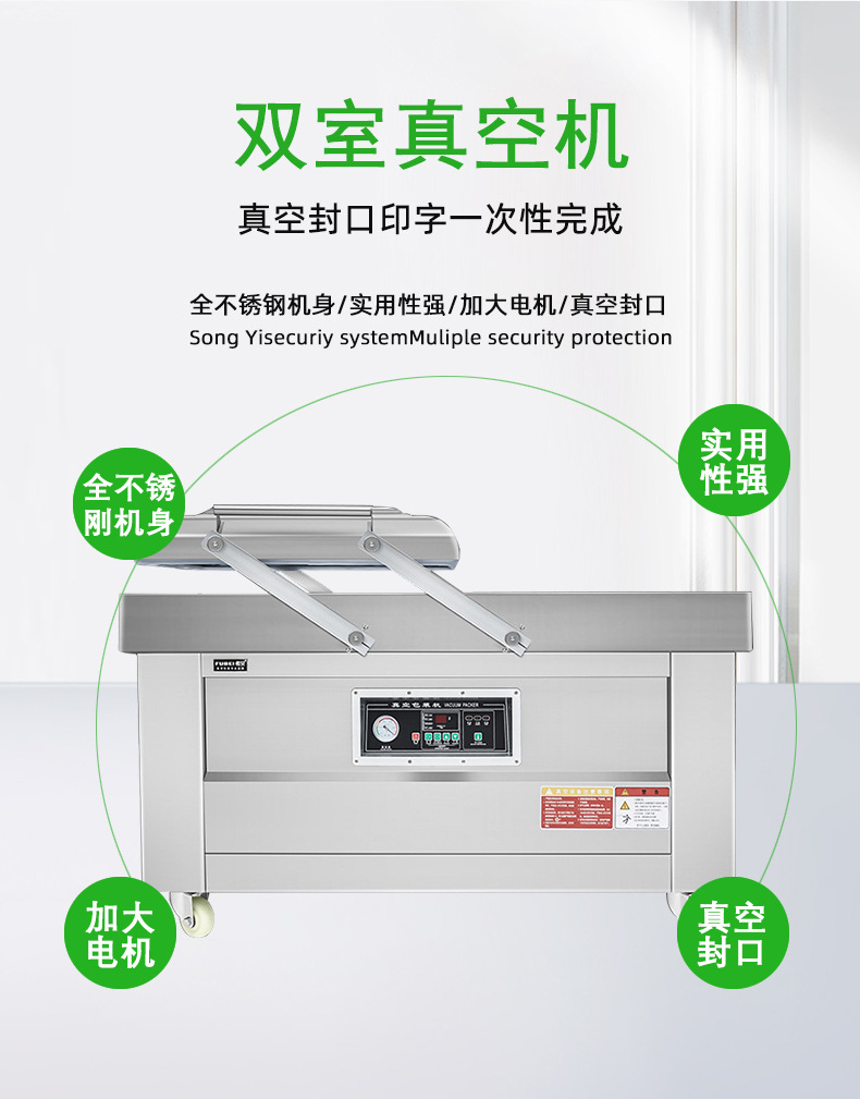 雙室真空包裝機憑借其高效、優(yōu)質(zhì)的包裝特性,廣泛適用于食品、電子、醫(yī)藥、日化以及五金機械等多個行業(yè)的產(chǎn)品包裝,以下是具體介紹: