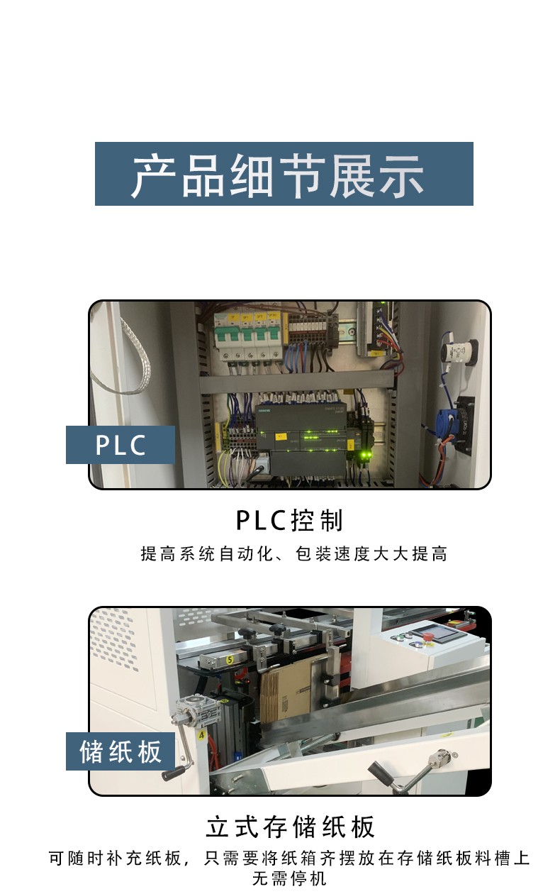 7. 成品下料:完成開箱封底的紙箱會通過輸送裝置被輸送到指定的位置,由操作人員進行收集或直接進入下一道包裝工序,如裝貨、封箱等。