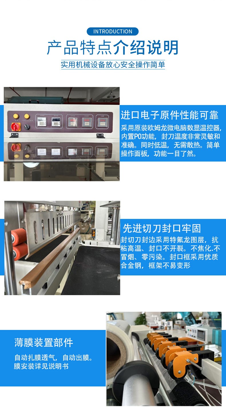 調整封切溫度和時間后,需要進行試包裝,觀察封切效果。如果封切后的薄膜切口整齊、密封牢固,且產品包裝外觀良好,說明調整合適;否則,需要繼續微調溫度和時間,直到達到滿意的封切效果。同時,不同品牌和型號的設備在具體操作步驟和調節范圍上可能會有所不同,因此在調整前務必仔細閱讀設備的操作說明書